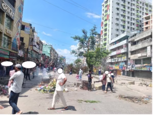 Police, BGB — had set up temporary camps near BTV. Under the foot-over-bridge in front of BTV, police stood. About 70–80 meters ahead, near Delta Healthcare, was the frontline.